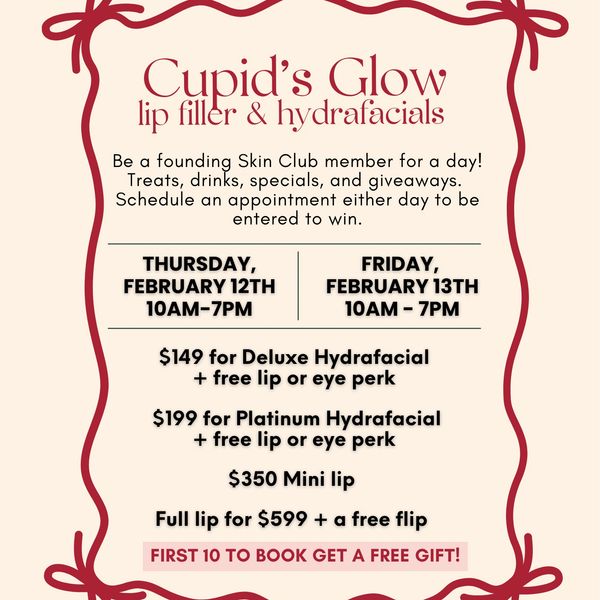 Cupid’s Glow Event: Exclusive discounts on Lip Filler & HydraFacials on 2/12 & 2/13